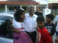 Beliau tiba di rumahnya kira-kira pukuk 7 petang tadi dengan terus dipeluk oleh tiga anaknya sebaik sahaja beliau keluar dari kereta polis.
